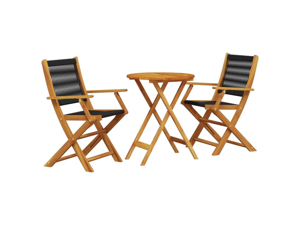 3dílný bistro set černý polypropylen a masivní dřevo 3281793