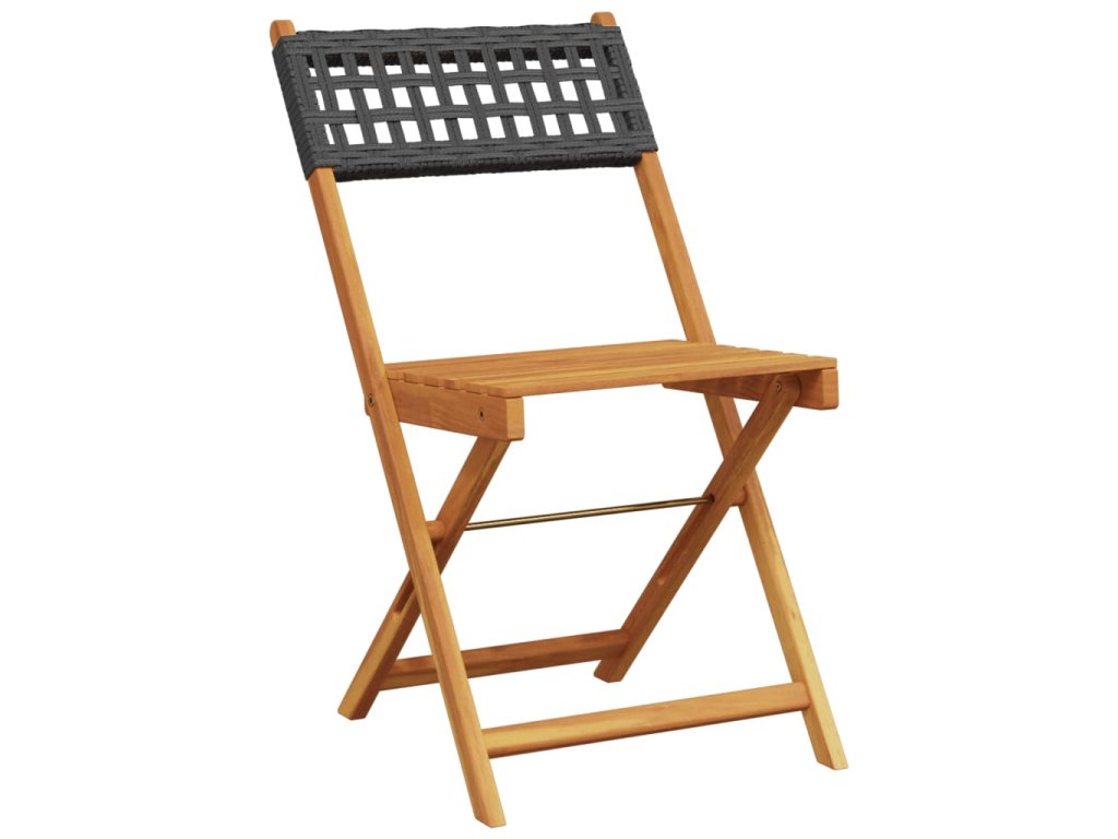 3dílný bistro set černý polyratan a masivní dřevo 3281862