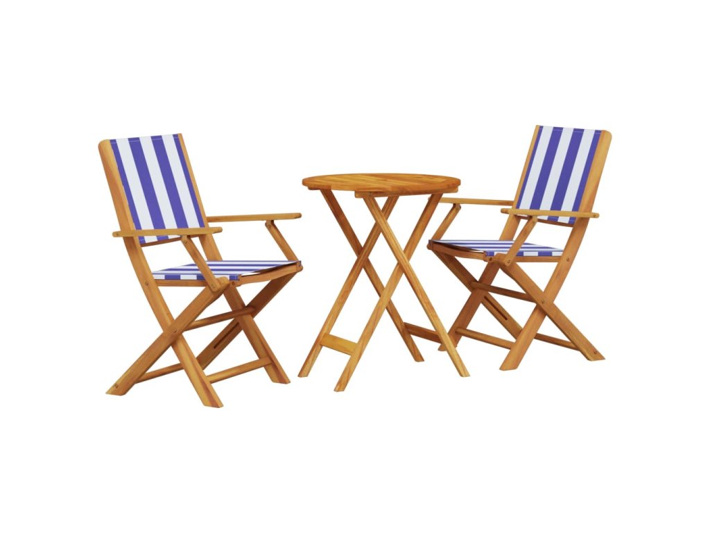 3dílný bistro set modrý a bílý textil a masivní dřevo 3281801