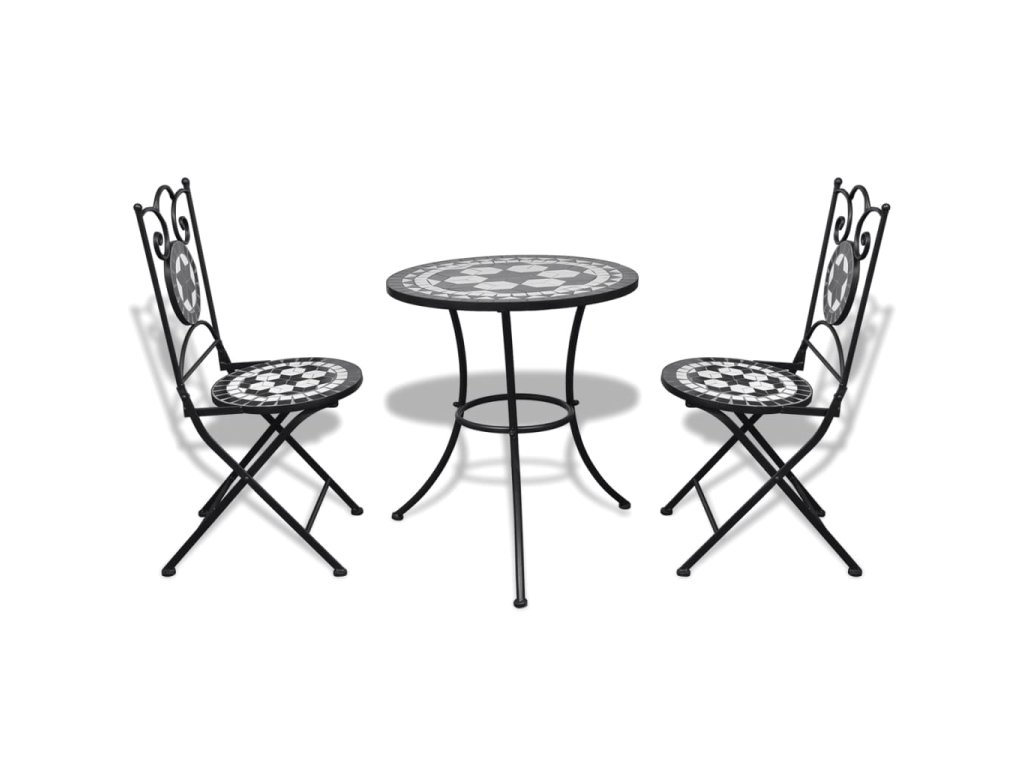 3dílný bistro set mozaikový keramický černý a bílý 271772