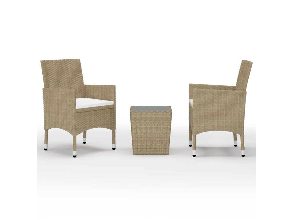 3dílný bistro set polyratan a tvrzené sklo béžový 3058360