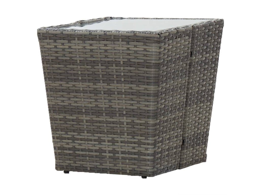 - Materiál: polyratan, ocel, látka (100% polyester), tvrzené sklo