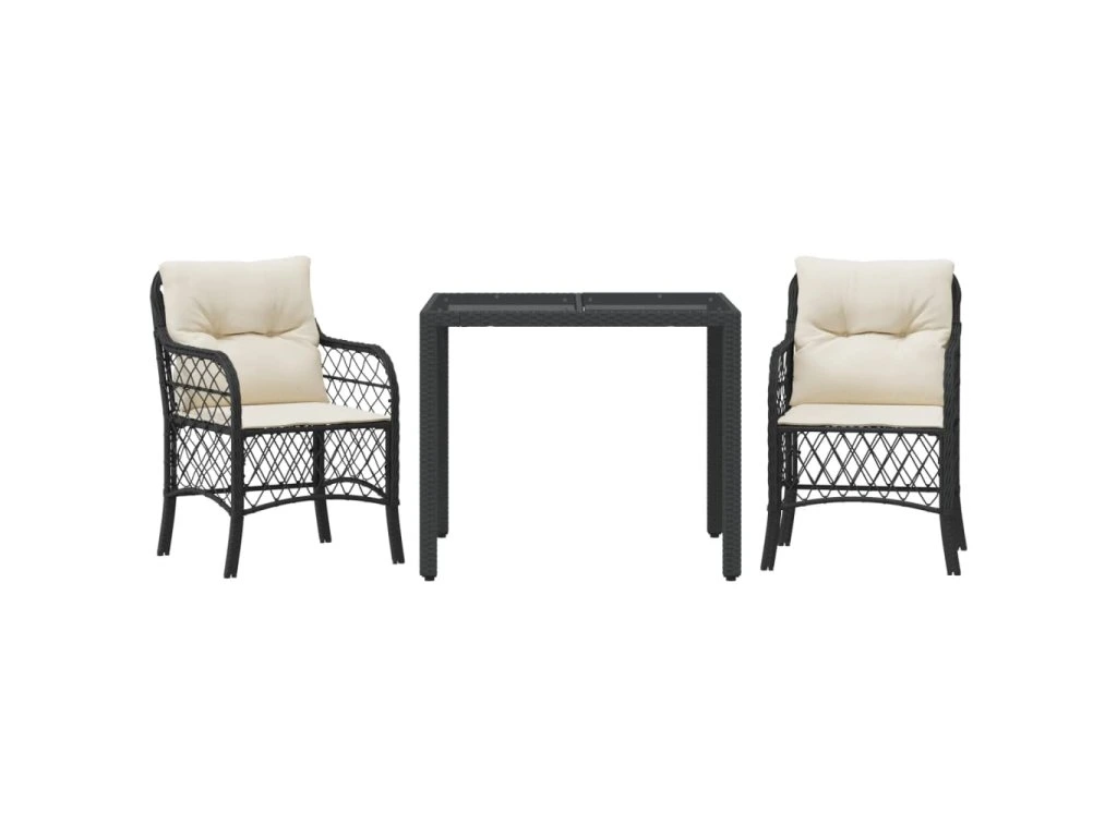 3dílný bistro set s poduškami černý polyratan 3212018