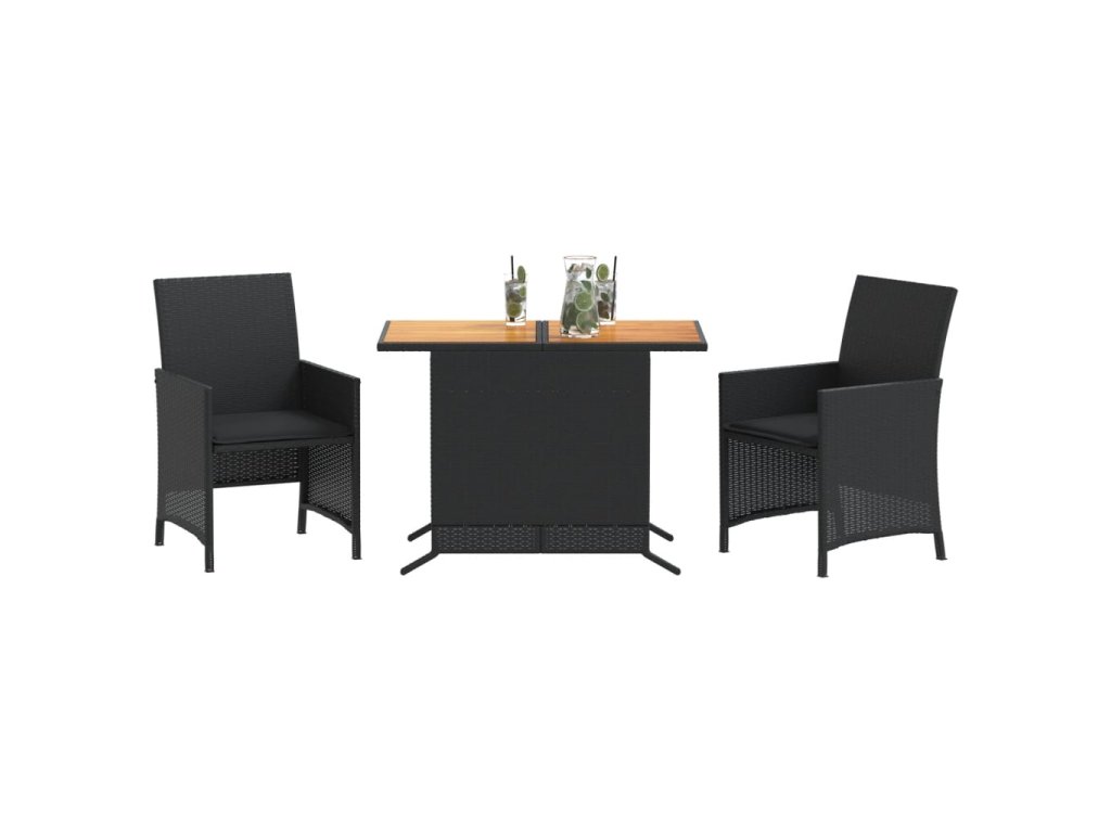 - Materiál: PE ratan, práškově lakovaná ocel, masivní akáciové dřevo s olejovou povrchovou úpravou