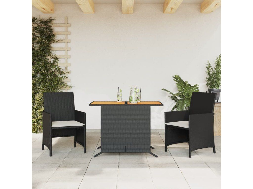 3dílný bistro set s poduškami černý polyratan 365124