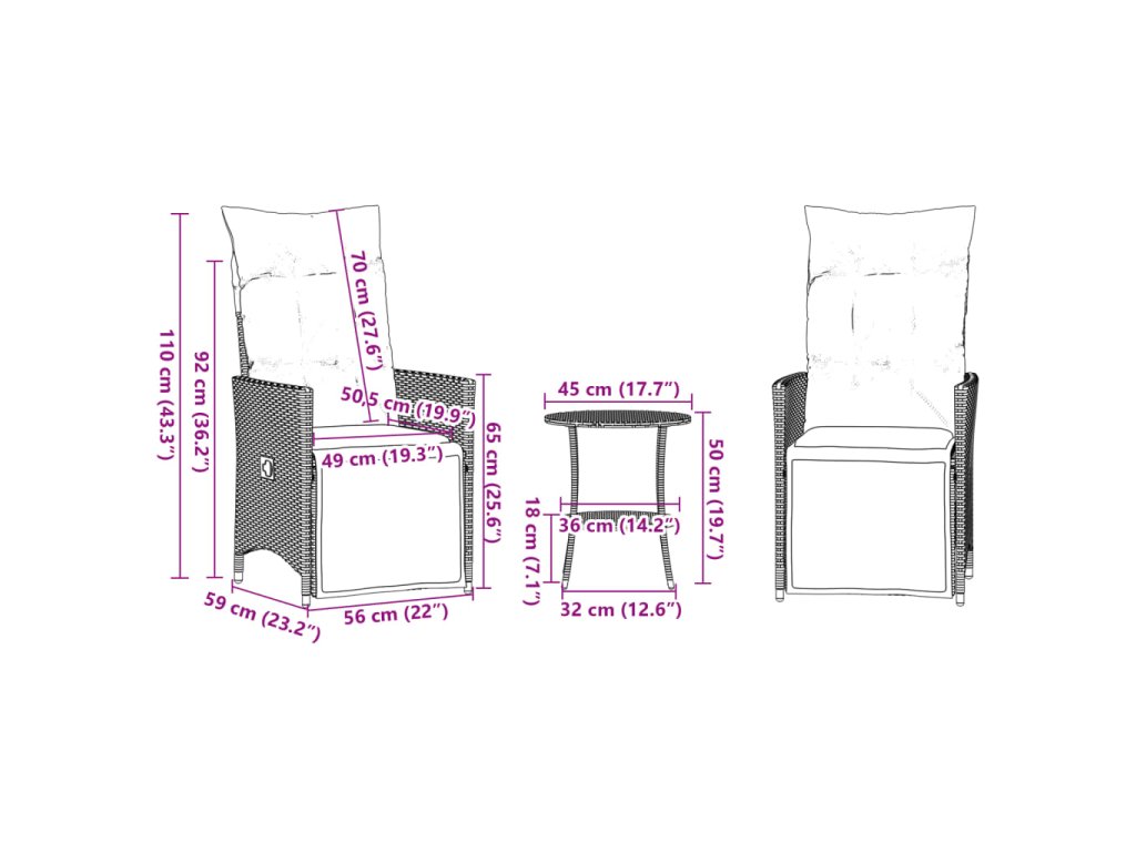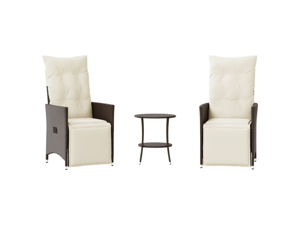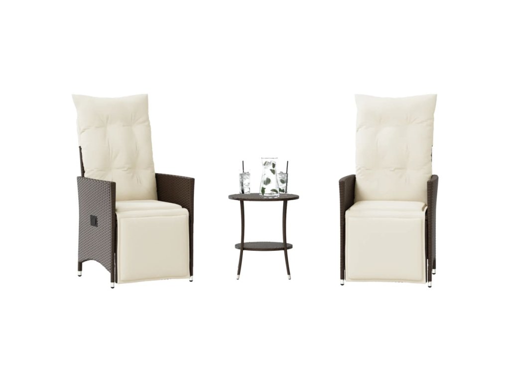 3dílný bistro set s poduškami hnědý polyratan 365674