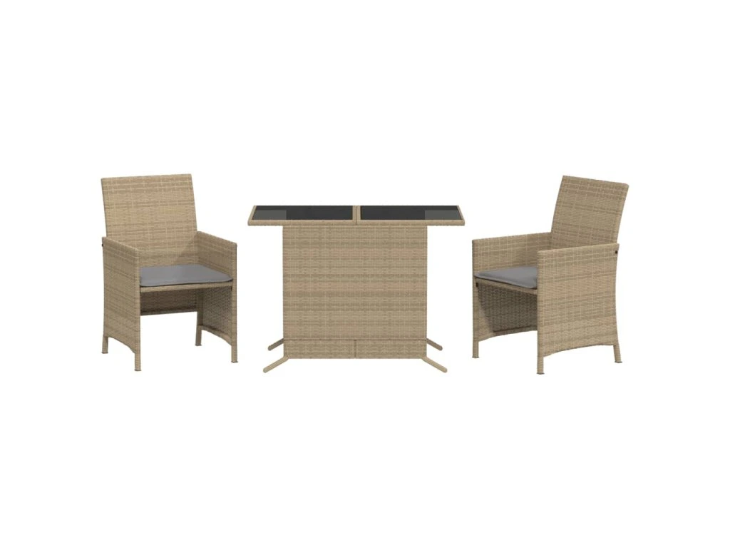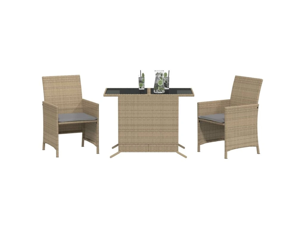 3dílný bistro set s poduškami mix béžové polyratan 365121