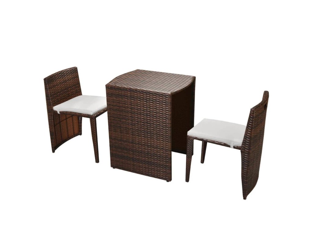 3dílný bistro set s poduškami polyratan hnědý 42881