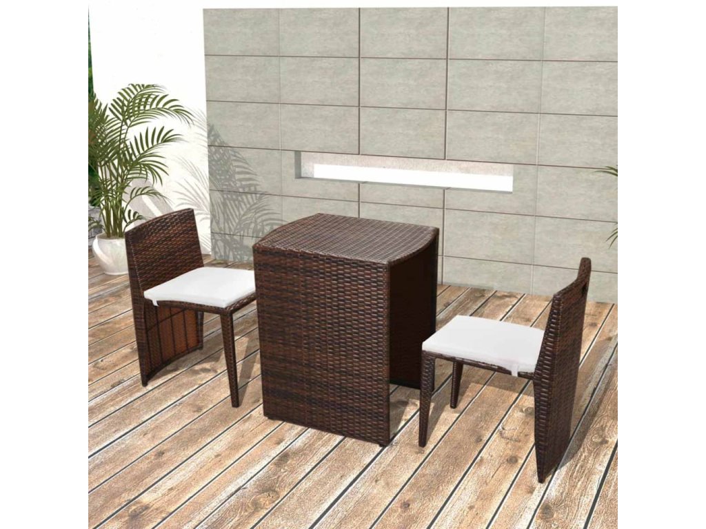 Díky ocelovým rámům jsou stůl i židle silné a robustní a díky své lehké konstrukci se všechny kusy dají snadno přemisťovat. Vůči počasí a vodě odolný PE ratan dělá tento jídelní set vhodným pro každodenní použití venku a snadno se čistí. Měkké polštáře jsou velmi pohodlné. Sada je ideální pro balkony nebo menší terasy a zahrady, neboť židle mohou být pohodlně uloženy pod stolem, což šetří místo.