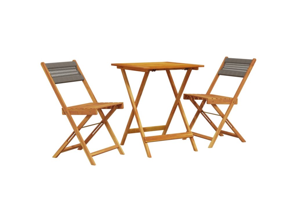 3dílný bistro set šedý polypropylen a masivní dřevo 3281758