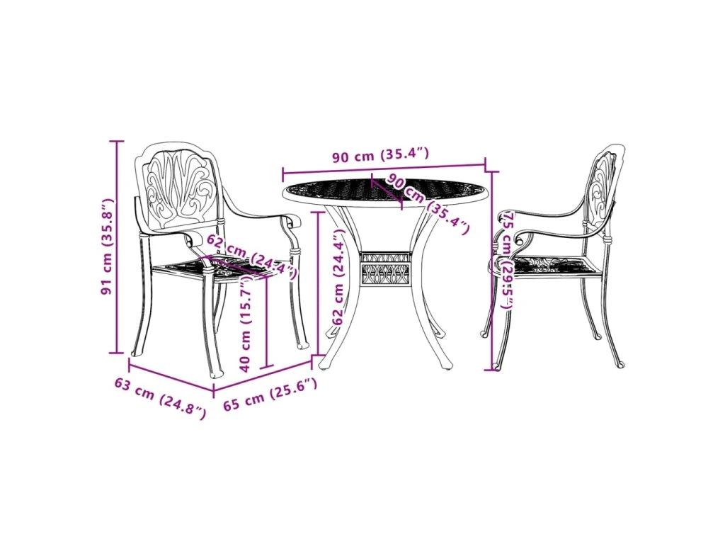 - Robustní a odolný rám: Tento zahradní bistro set je zhotovený z litého hliníku, je tedy dostatečně robustní a odolný, aby vám zaručil dlouhá léta používání. Materiál je odolný vůči korozi a povětrnostním vlivům, takže jej můžete venku používat po celý rok.