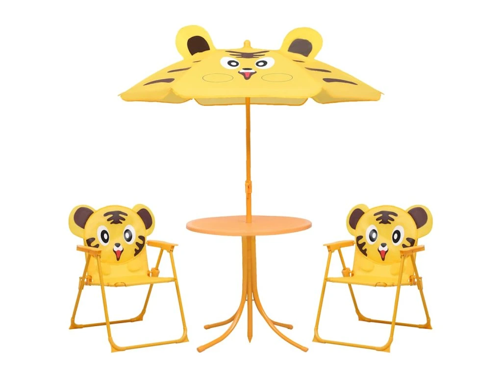 Tento zahradní nábytek má vysoce odolný ocelový rám, takže je bytelným, robustním a hlavně bezpečným posezením pro vaše děti. Přiložený slunečník ochrání vaše děti před sluncem. Když set nepoužíváte, můžete židle složit, abyste ušetřili místo.