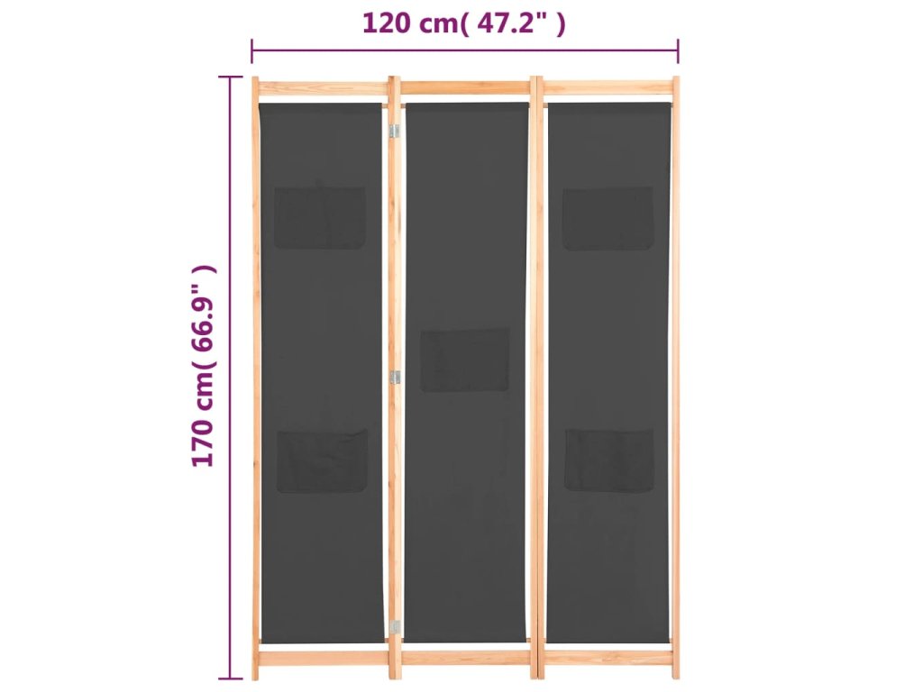 3dílný paraván šedý 120 x 170 x 4 cm textil 248175