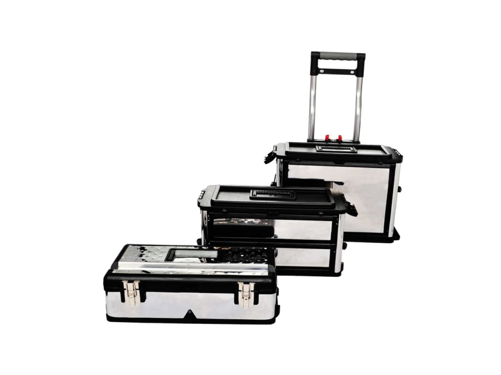 Tento kufr na nářadí je ideální pro každého, kdo potřebuje se svým nářadím často cestovat. Jedná se též o mobilní centralizované místo pro kutilské nářadí nebo řemeslné potřeby. Obsahuje 3 oddělené součásti: tradiční box na nářadí, přihrádku se 2 zásuvkami a velký spodní box.