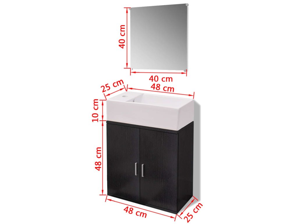 Sada nábytku sestává ze zrcadla a skříňky pod umyvadlo. Skříňka pod umyvadlo poskytuje dostatečný prostor pro ukládání vašich toaletních potřeb, zkrášlovacích přípravků a různých druhů drobných předmětů. Tato koupelnová skříňka, vyrobená z vysoce kvalitní dřevotřísky, je velmi robustní a odolná.