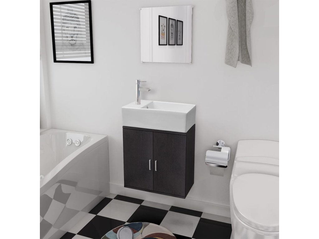 3dílný set koupelnového nábytku a umyvadla černý 272227