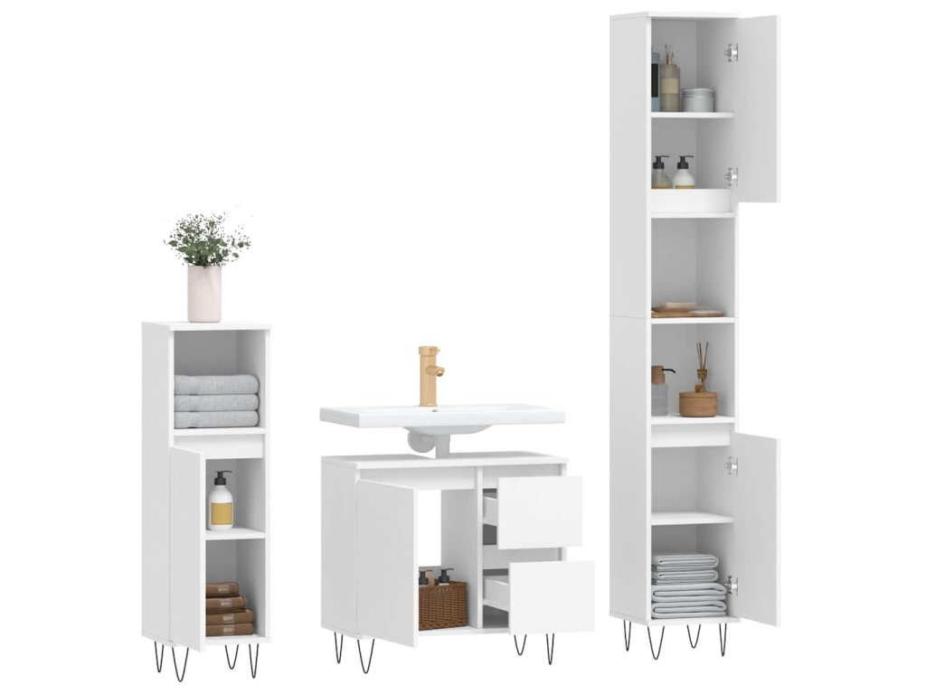 3dílný set koupelnového nábytku bílý kompozitní dřevo 3190221
