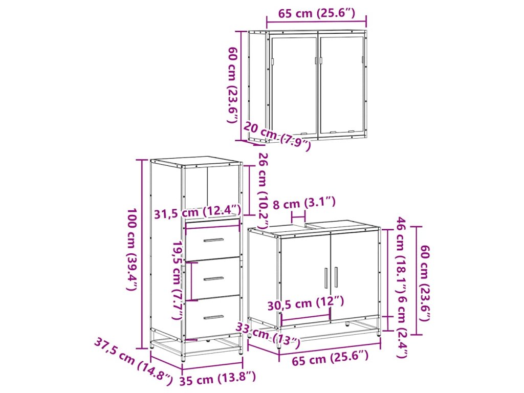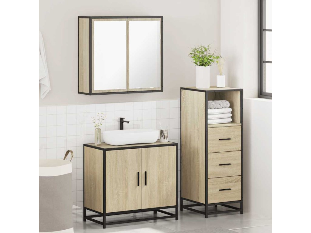 3dílný set koupelnového nábytku dub sonoma kompozitní dřevo 3301006