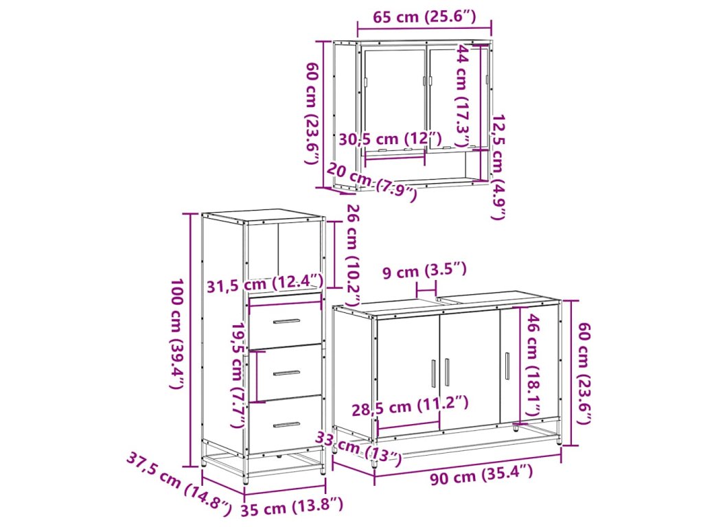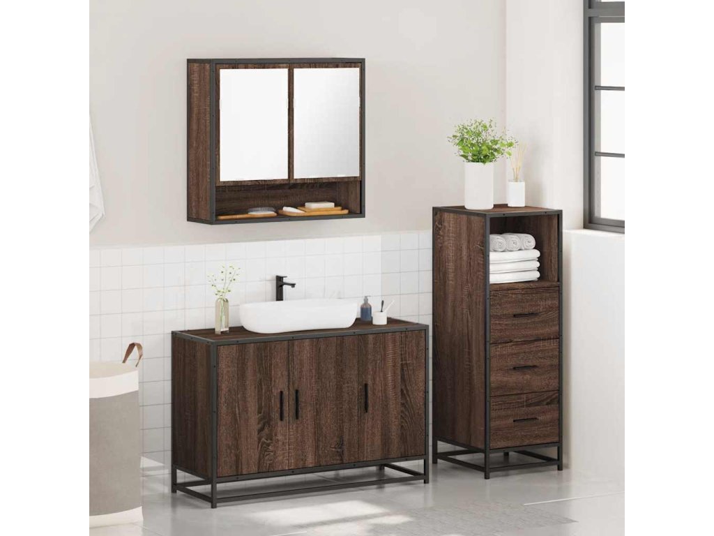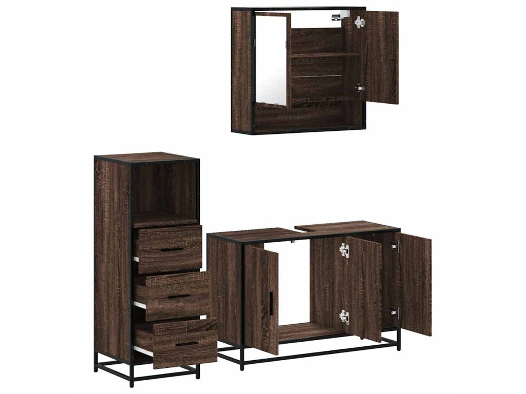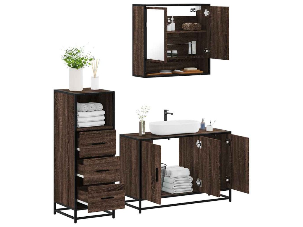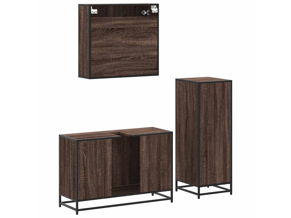 3dílný set koupelnového nábytku hnědý dub kompozitní dřevo 3301044