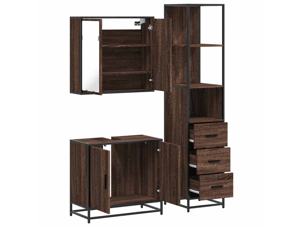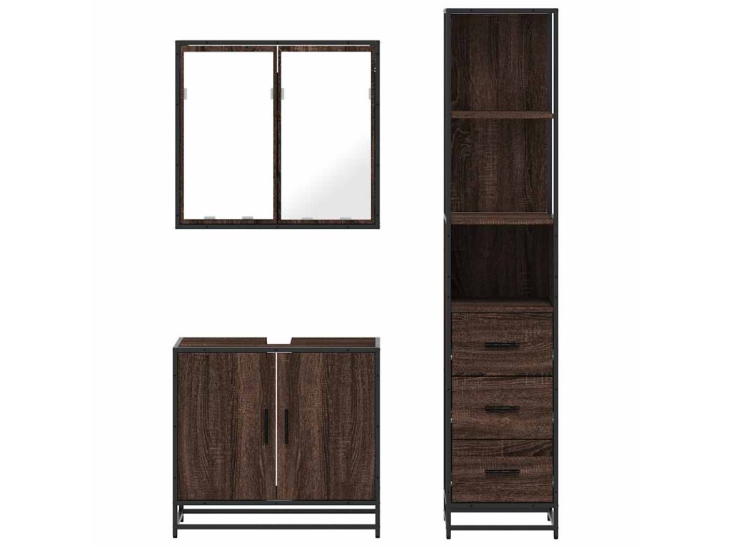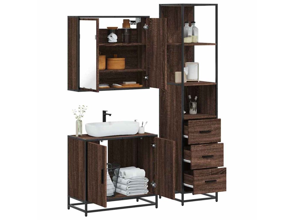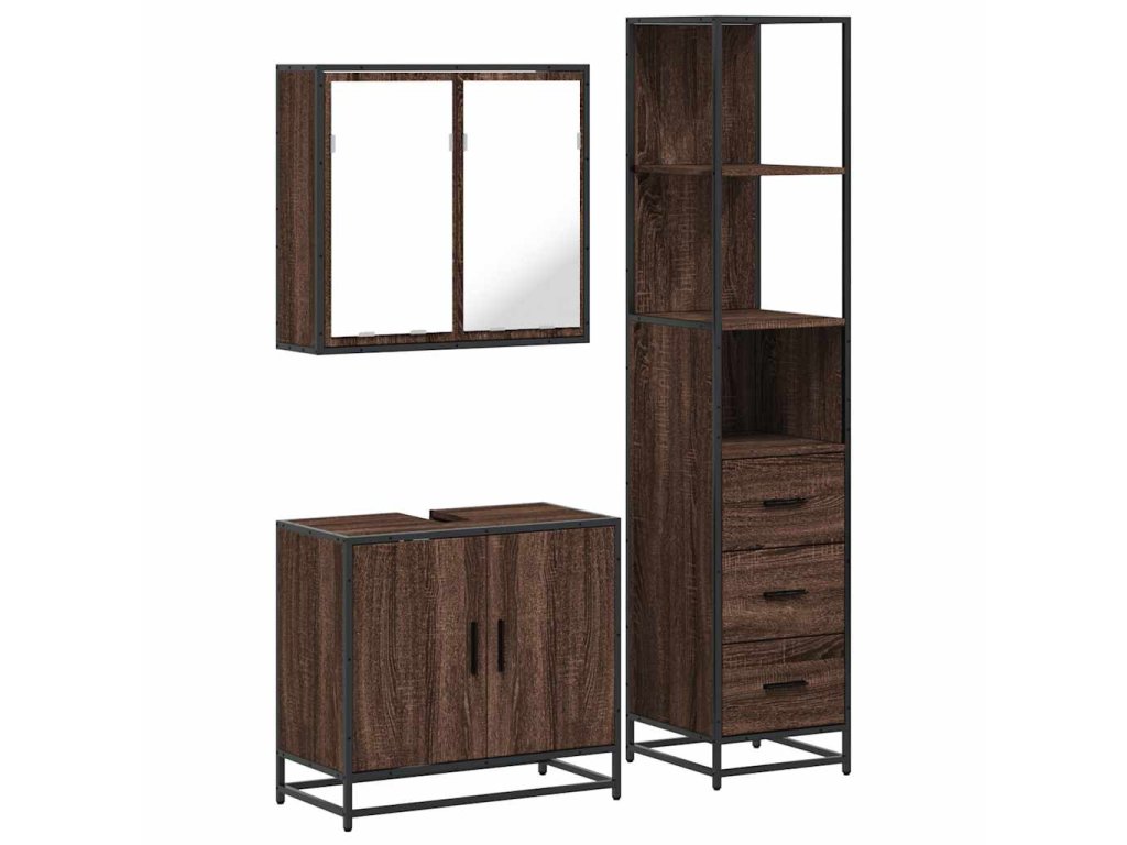 3dílný set koupelnového nábytku hnědý dub kompozitní dřevo 3301129