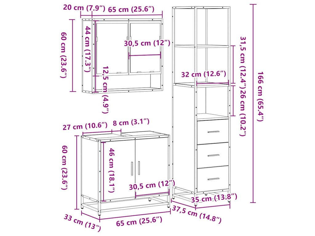 - Rozměry koupelnové skříňky: 35 x 37,5 x 166 cm (D x Š x V)