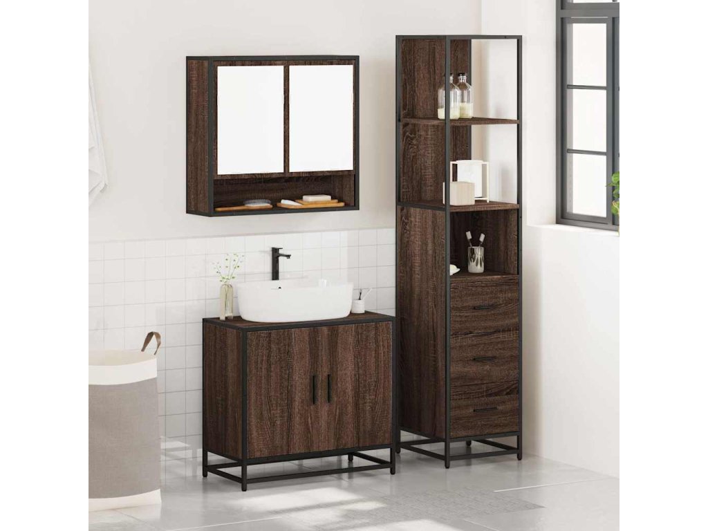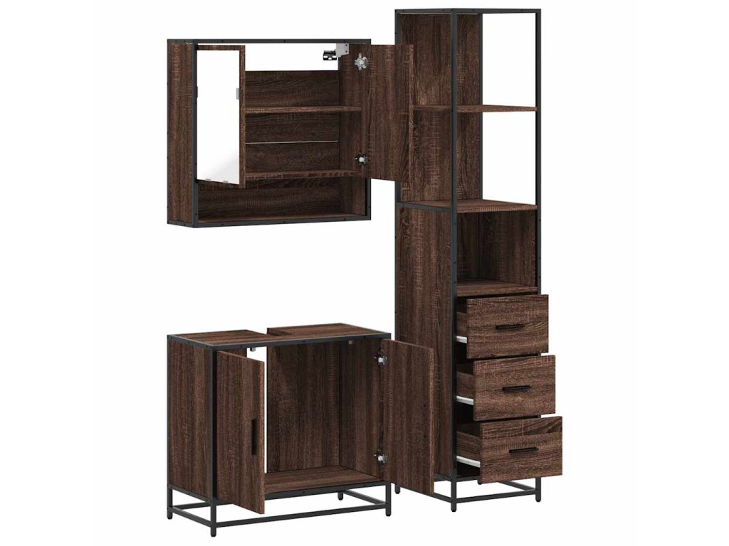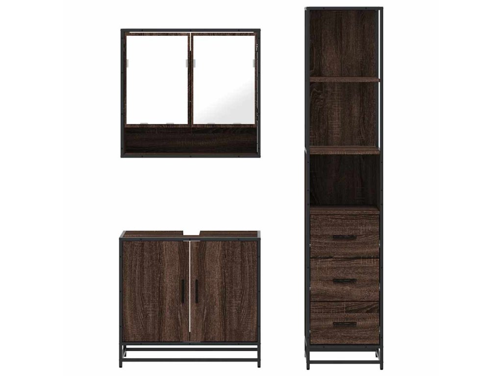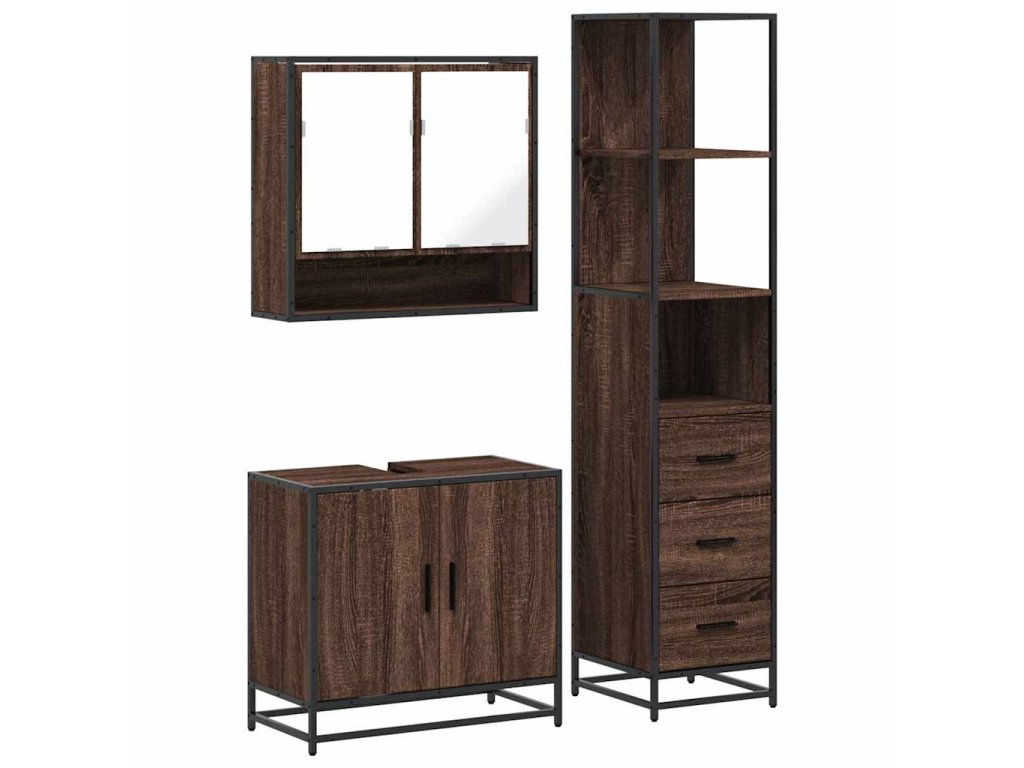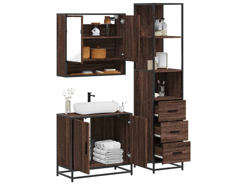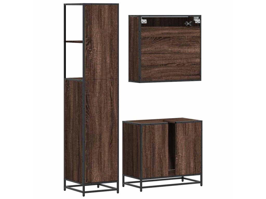 3dílný set koupelnového nábytku hnědý dub kompozitní dřevo 3301159