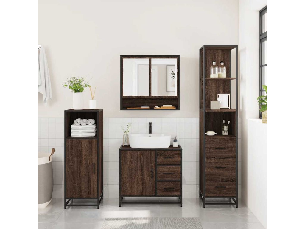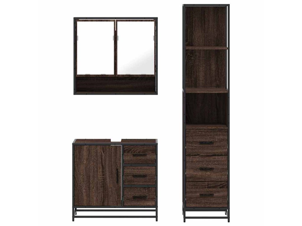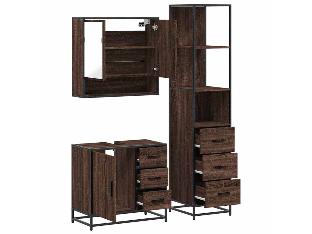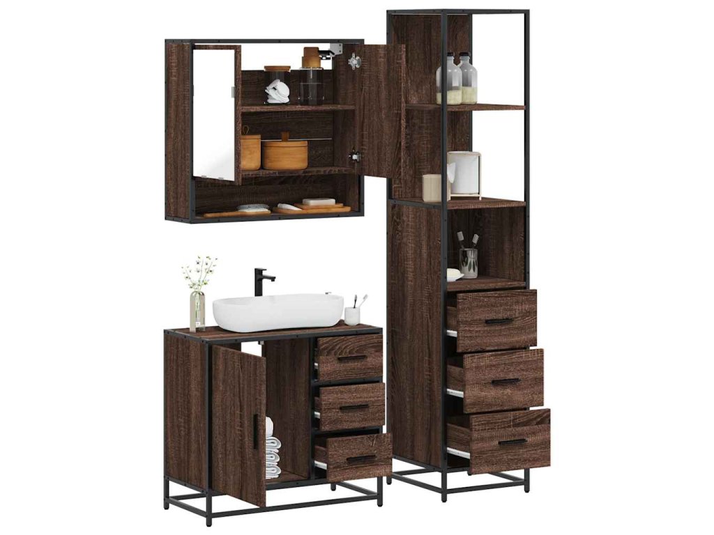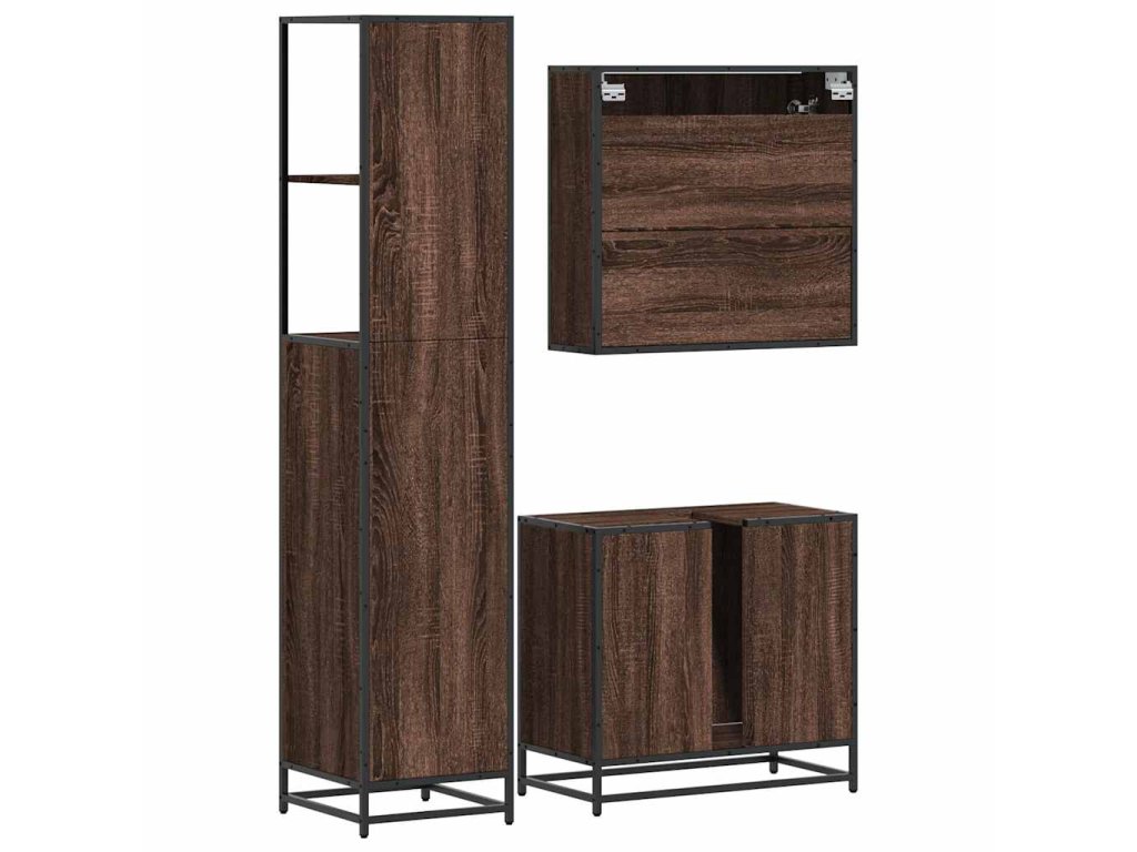 3dílný set koupelnového nábytku hnědý dub kompozitní dřevo 3301169