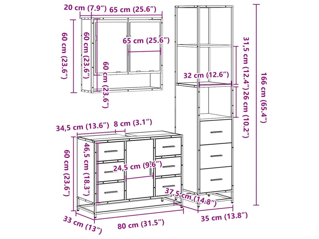 - Rozměry koupelnové skříňky: 35 x 37,5 x 166 cm (D x Š x V)