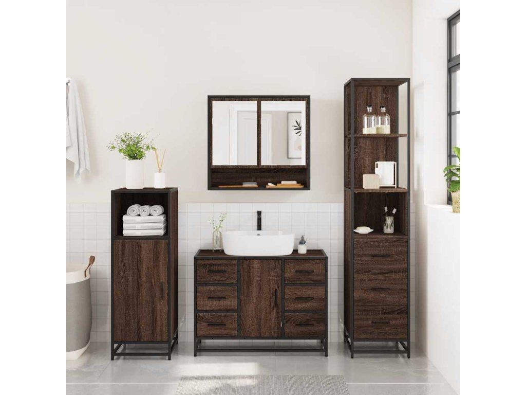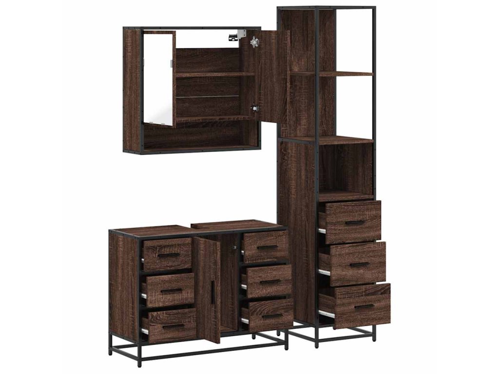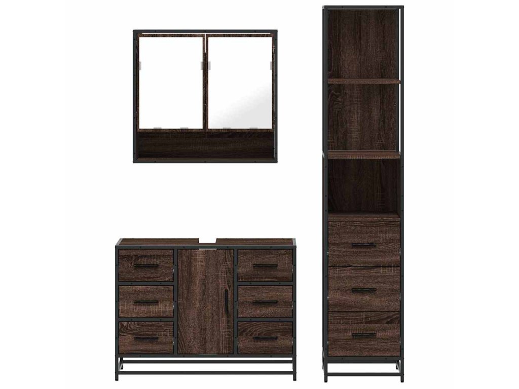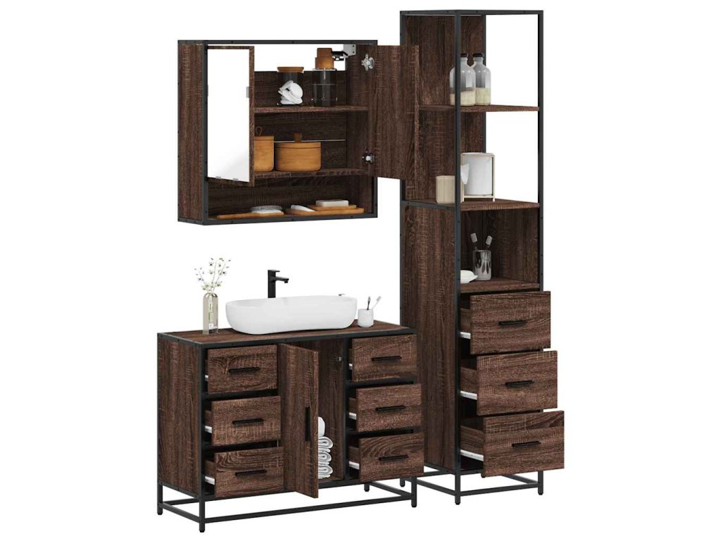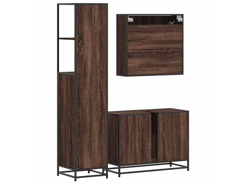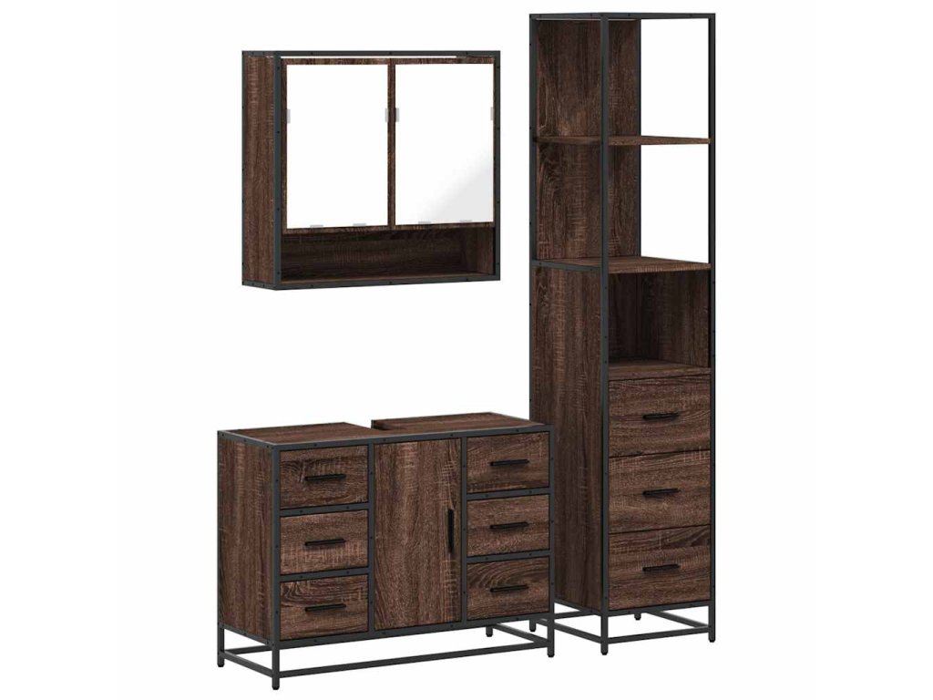 3dílný set koupelnového nábytku hnědý dub kompozitní dřevo 3301174