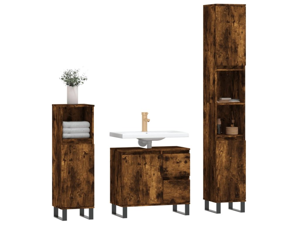 3dílný set koupelnového nábytku kouřový dub kompozitní dřevo 3190234