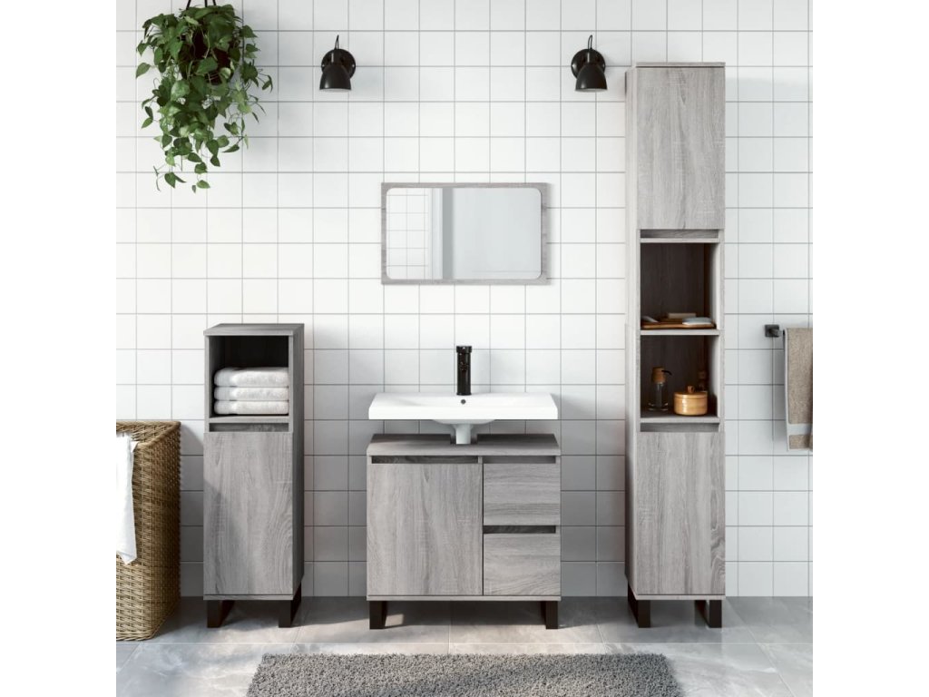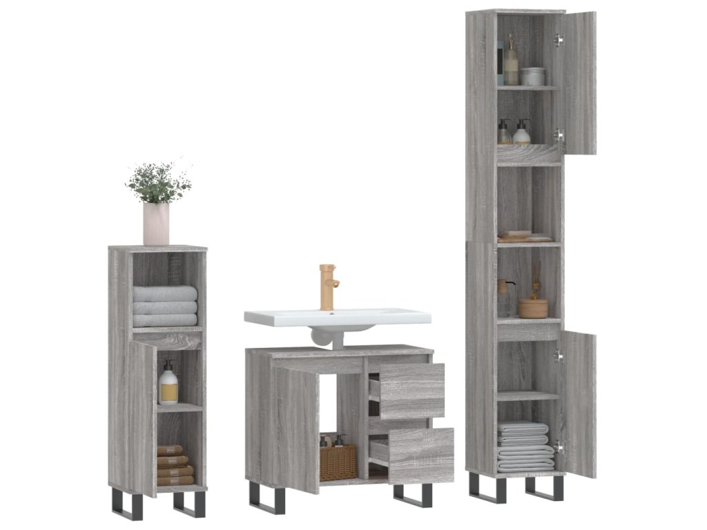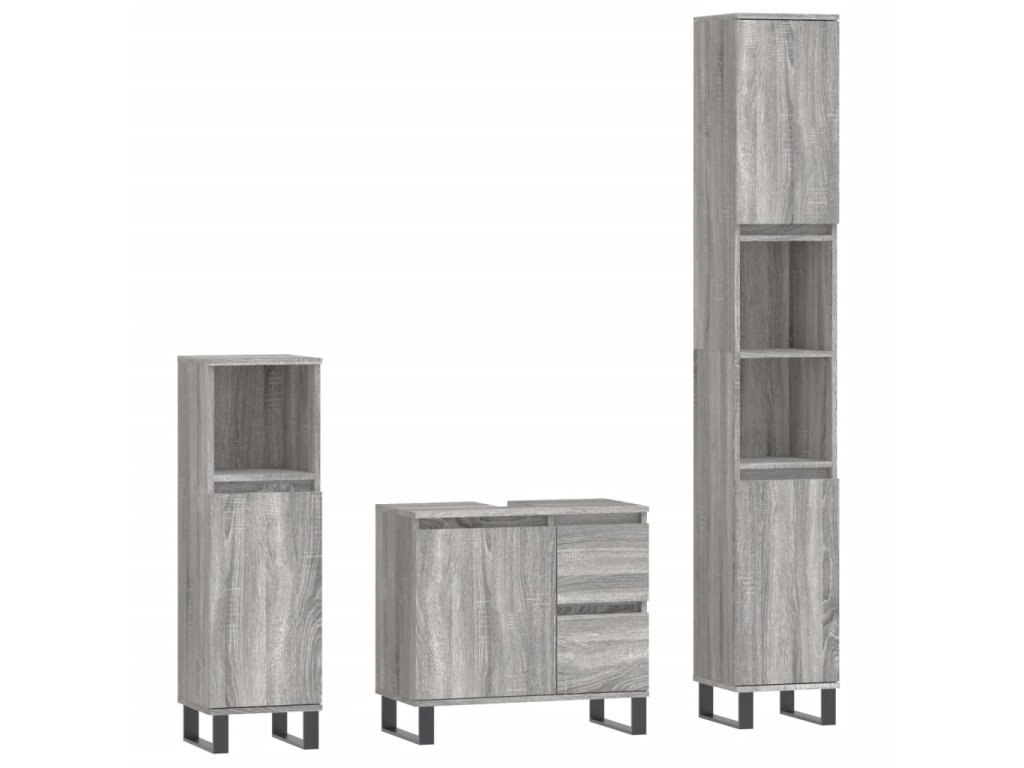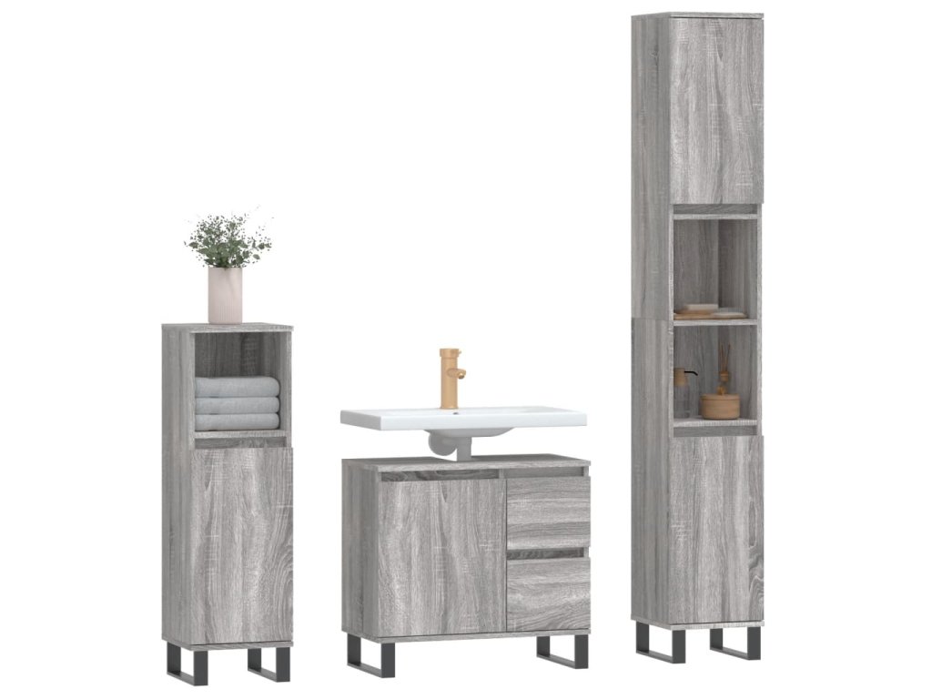 3dílný set koupelnového nábytku šedý sonoma kompozitní dřevo 3190235