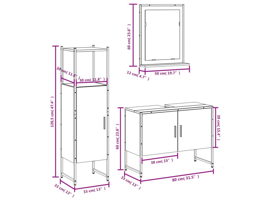- Rozměry umyvadlové skříňky: 80 x 33 x 60 cm (D x Š x V)