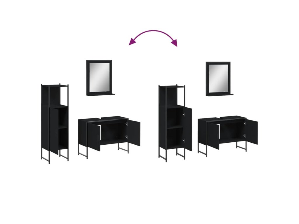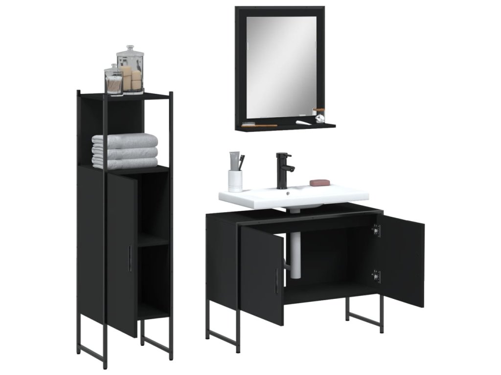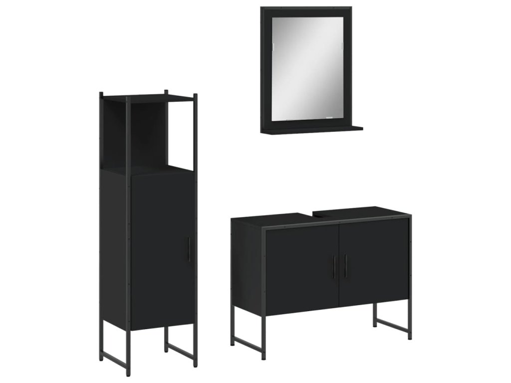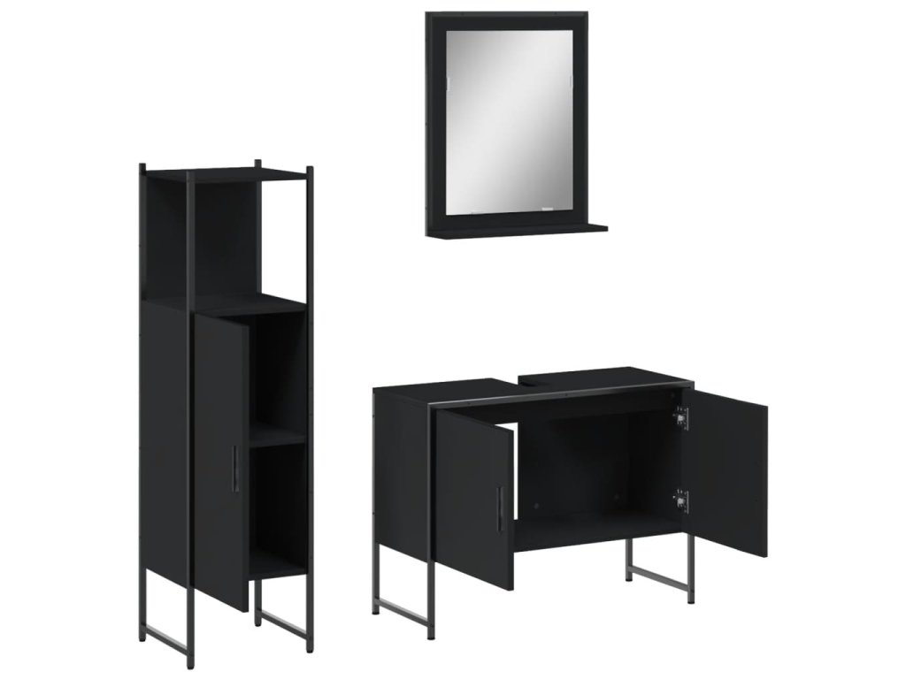 3dílný set koupelnových skříněk černý kompozitní dřevo 3214349