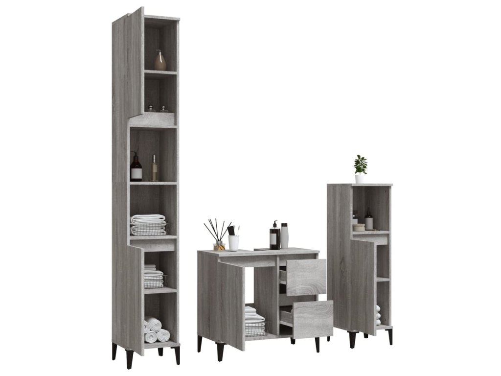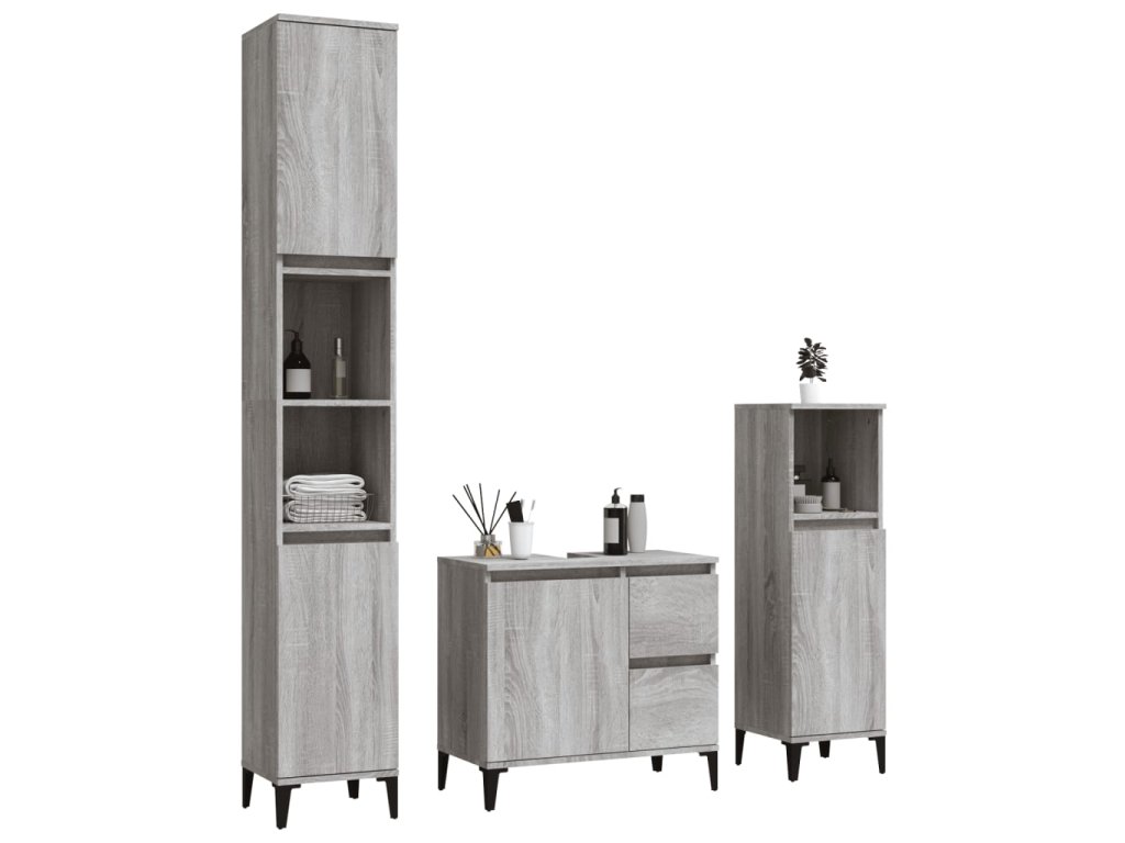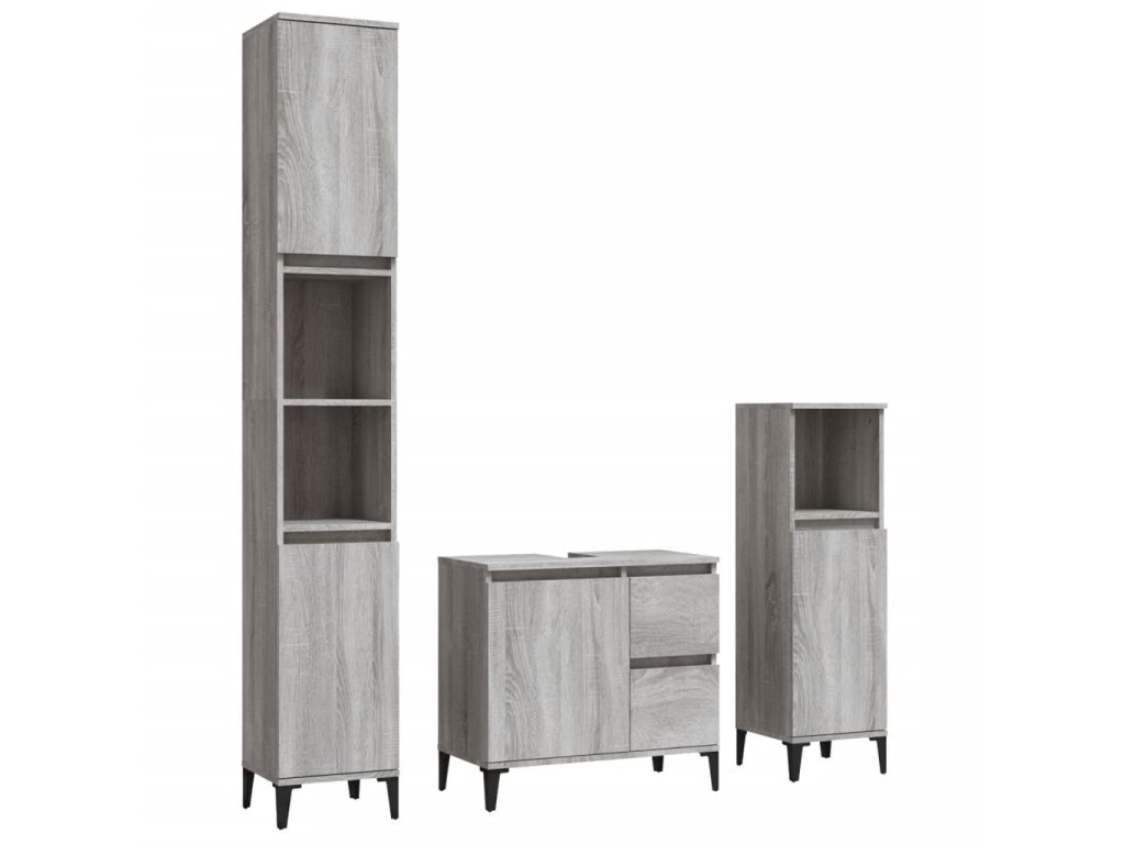 3dílný set koupelnových skříněk šedý sonoma kompozitní dřevo 3185549