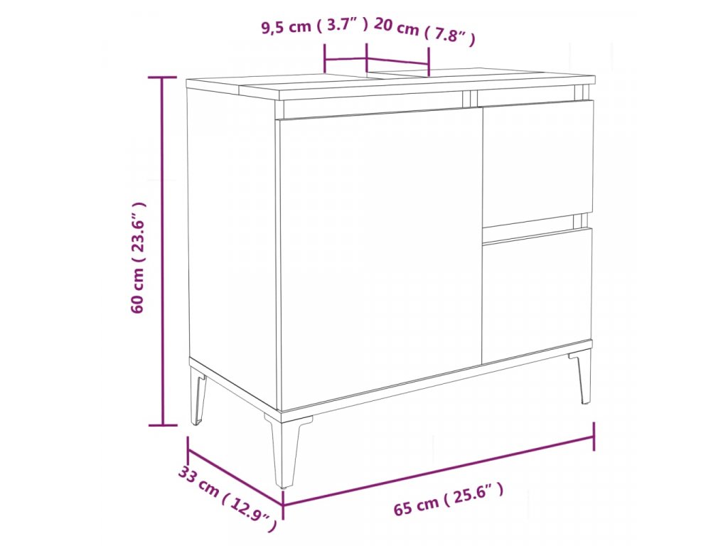 - Rozměry umyvadlové skříňky: 65 x 33 x 60 cm (Š x H x V)