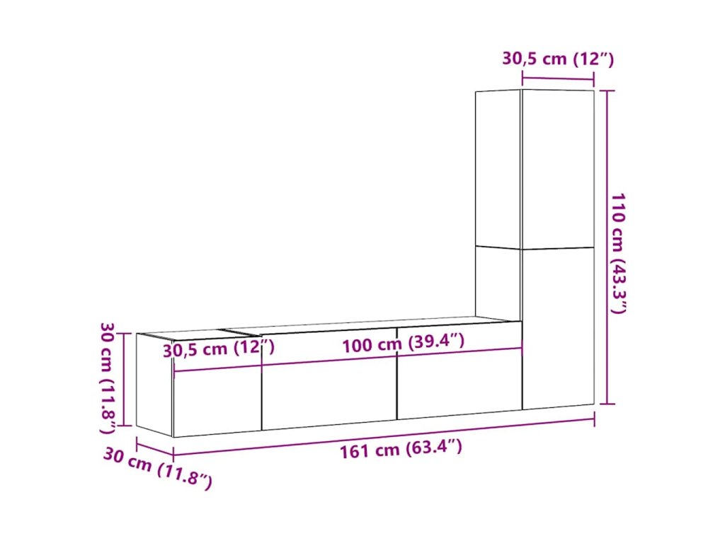 3dílný set TV skříněk betonově šedý kompozitní dřevo 3079076