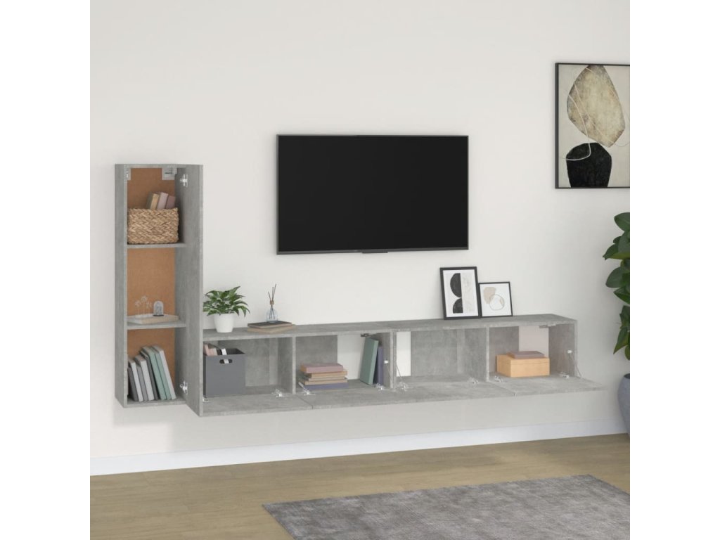 3dílný set TV skříněk betonově šedý kompozitní dřevo 3114321