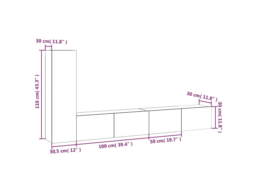 - 1x TV skříňka: 30,5 x 30 x 110 cm (Š x H x V)