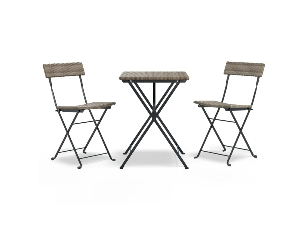Tento 3dílný skládací bistro set z polyratanu je vynikající volbou pro stolování nebo odpočinek na zahradě, balkoně nebo terase.