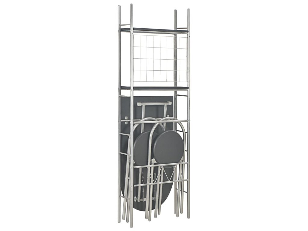 Všechny povrchy z odolné MDF se snadno čistí. Ocelové rámy zajišťují mimořádnou stabilitu nábytku. Židle můžete složit, kdykoli je nepoužíváte, a ušetřit tak místo. Ke stolu je rovněž připevněn integrovaný 2patrový úložný regál, na němž si můžete přehledně uspořádat nejrůznější potřeby, které chcete mít po ruce. Složit lze i stolní desku, sestava se tedy výborně hodí do omezených prostor.