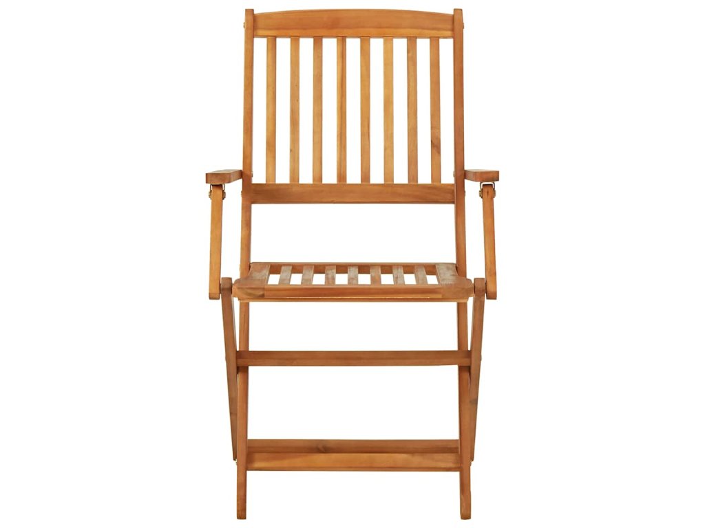 Tento jídelní set je vyrobený z masivního akáciového dřeva, je robustní a stabilní. Olejem napuštěný povrch nábytku snadno vyčistíte navlhčeným hadříkem. Jak jídelní stůl, tak i židle je možné složit, aby zbytečně nepřekážely, když je zrovna nepoužíváte.