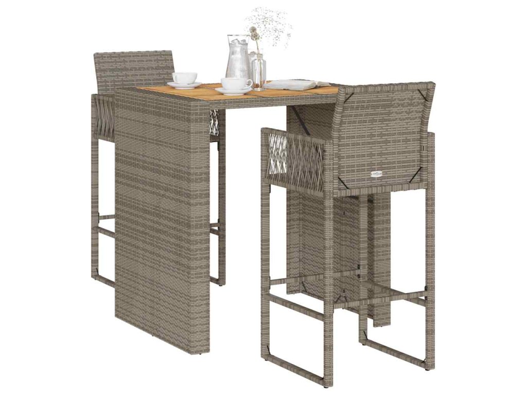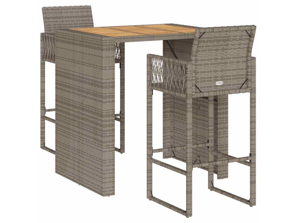 3dílný zahradní barový set bez podušek šedý polyratan akácie 3328887