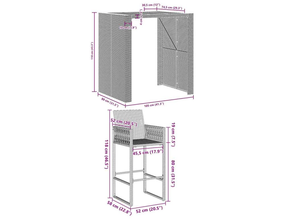 Tento módní zahradní barový set, který kombinuje styl a funkčnost, se jistě stane středem pozornosti vaší zahrady, terasy a jakéhokoli jiného obytného prostoru.