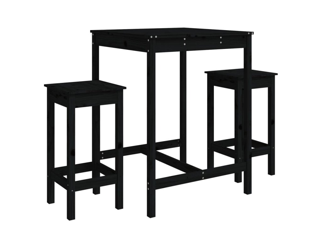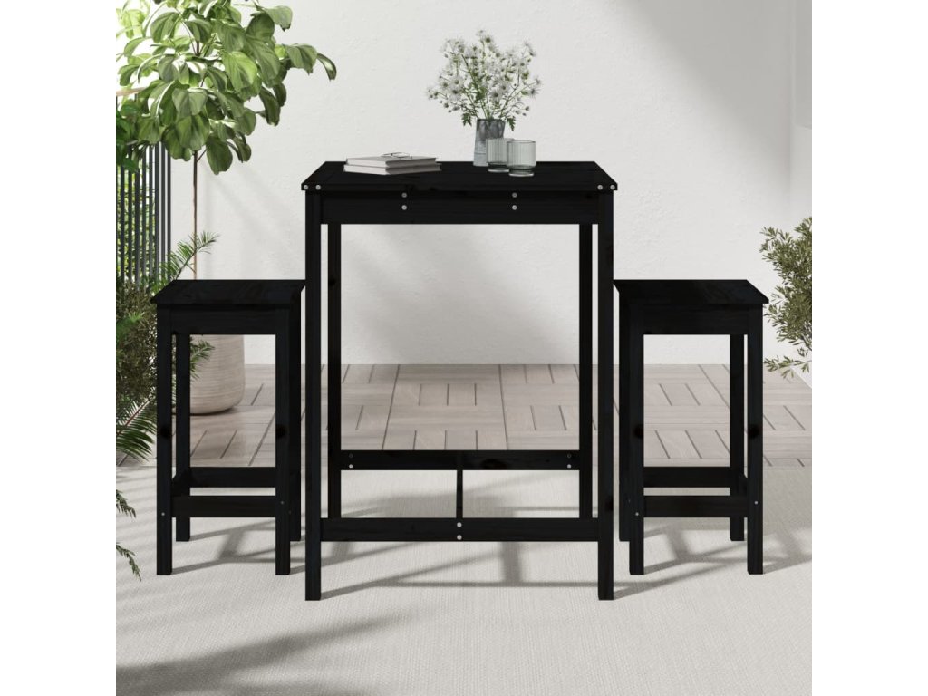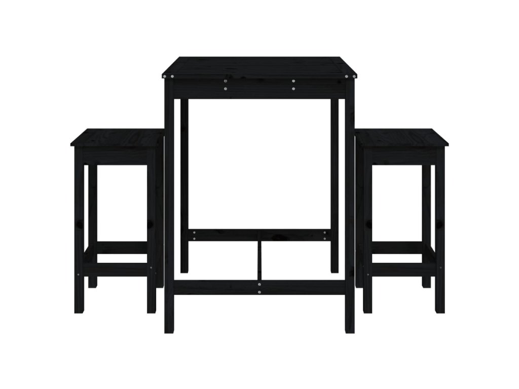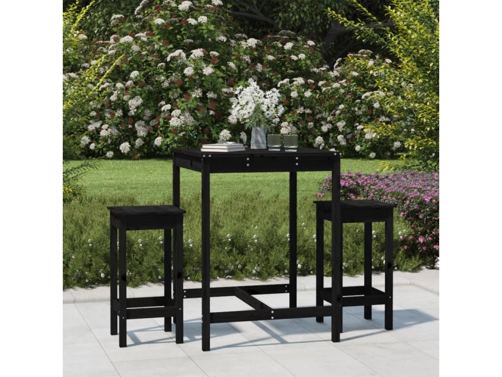 3dílný zahradní barový set černý masivní borové dřevo 3154729