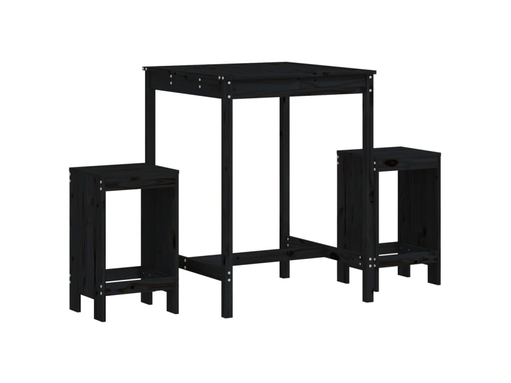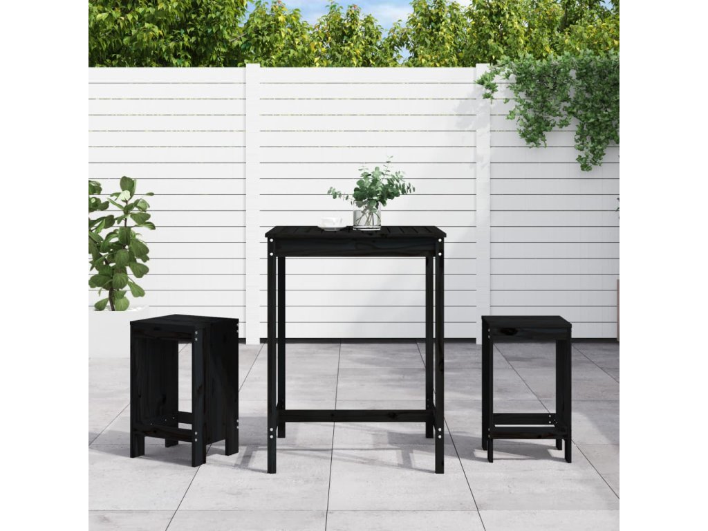 3dílný zahradní barový set černý masivní borové dřevo 3157737
