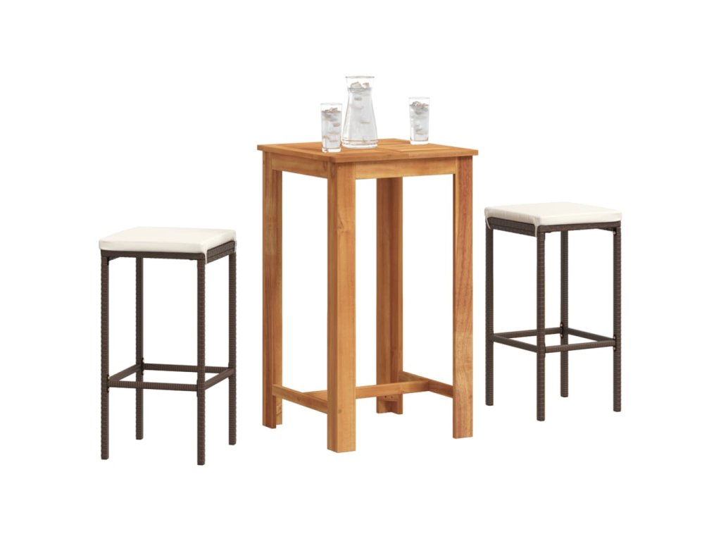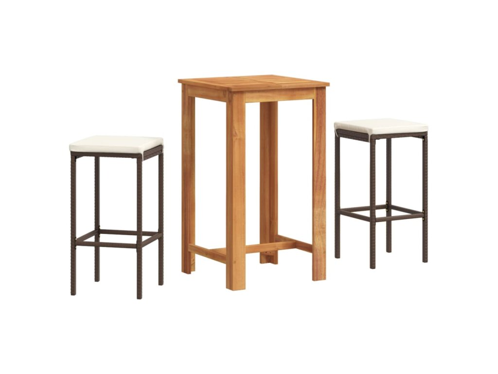 3dílný zahradní barový set hnědý masivní akácie a polyratan 3295266