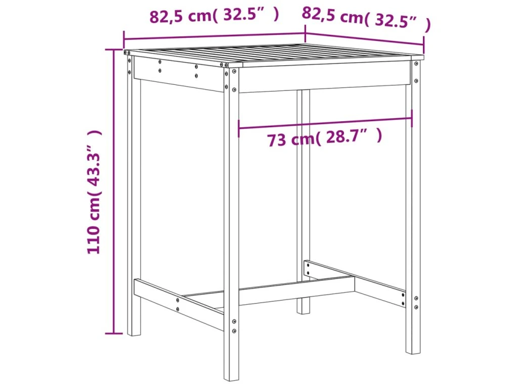 - Rozměry zahradního stolku: 82,5 x 82,5 x 110 cm (D x Š x V)