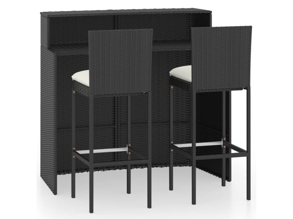 Barový set je vyrobený z PE ratanu, který výborně vzdoruje vodě i dalším klimatickým vlivům, a tak se snadno čistí, hodně toho vydrží a můžete ho klidně používat každý den. Rám z práškově lakované oceli přidává stolu i stoličkám na odolnosti a prodlužuje jejich životnost. Nábytek má ovšem zároveň lehkou konstrukci, abyste mohli všechny díly bez námahy přesouvat. Tlusté odnímatelné podušky na sedáky vám zajistí mimořádné pohodlí. Jejich potahy mají navíc zapínání na zip, což výrazně usnadňuje jejich sejmutí a praní.