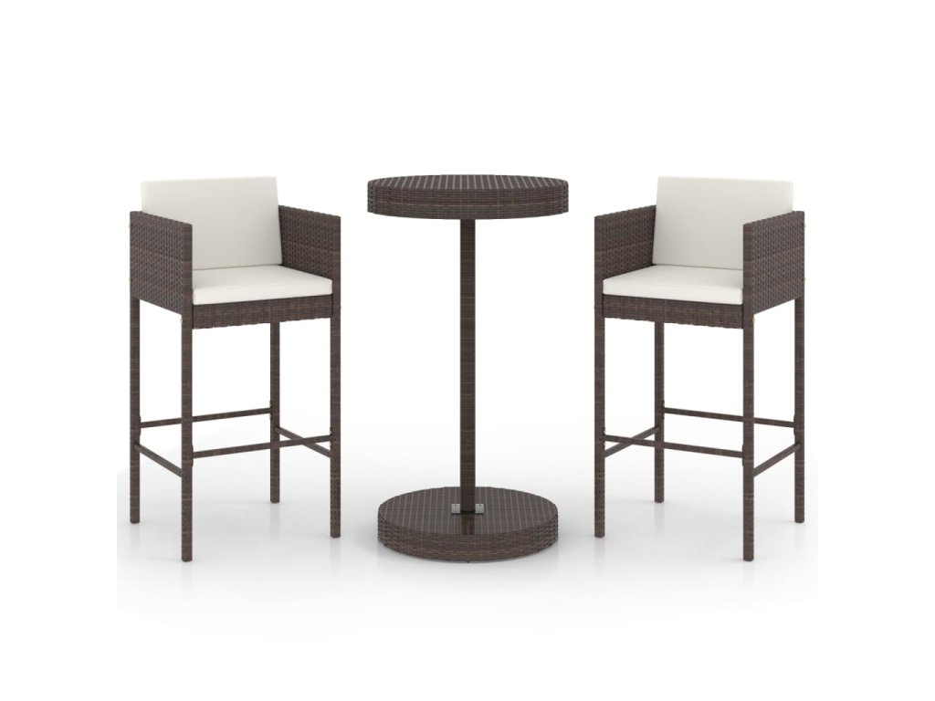 3dílný zahradní barový set s poduškami polyratan hnědý 3094771