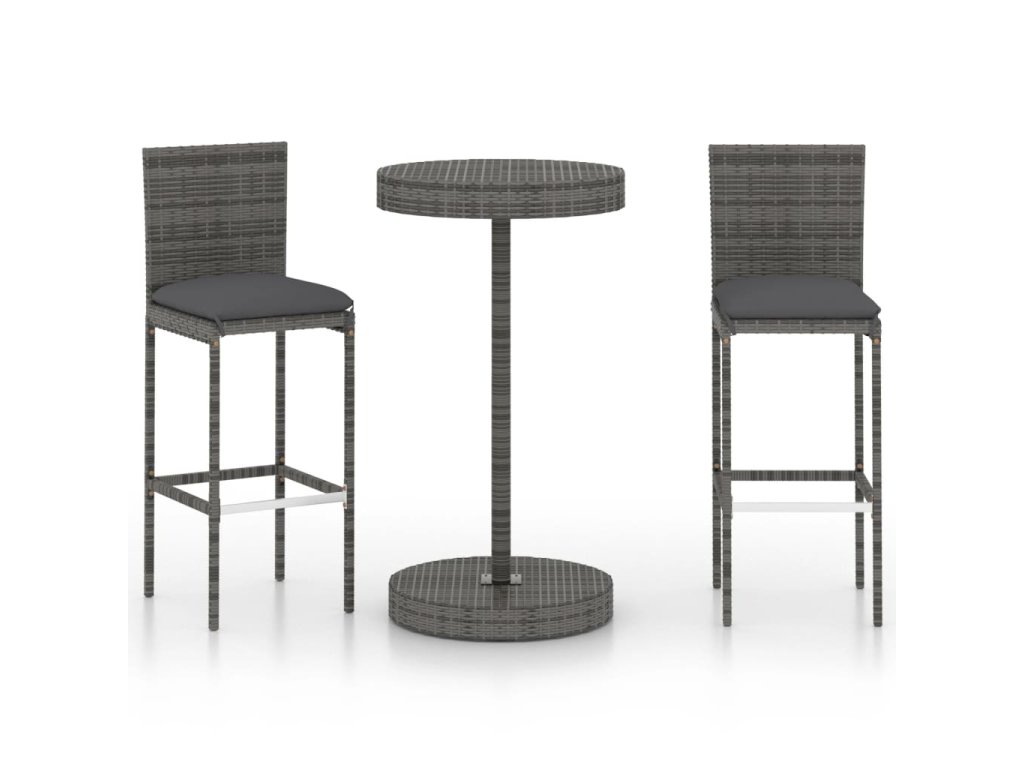3dílný zahradní barový set s poduškami polyratan šedý 3064765
